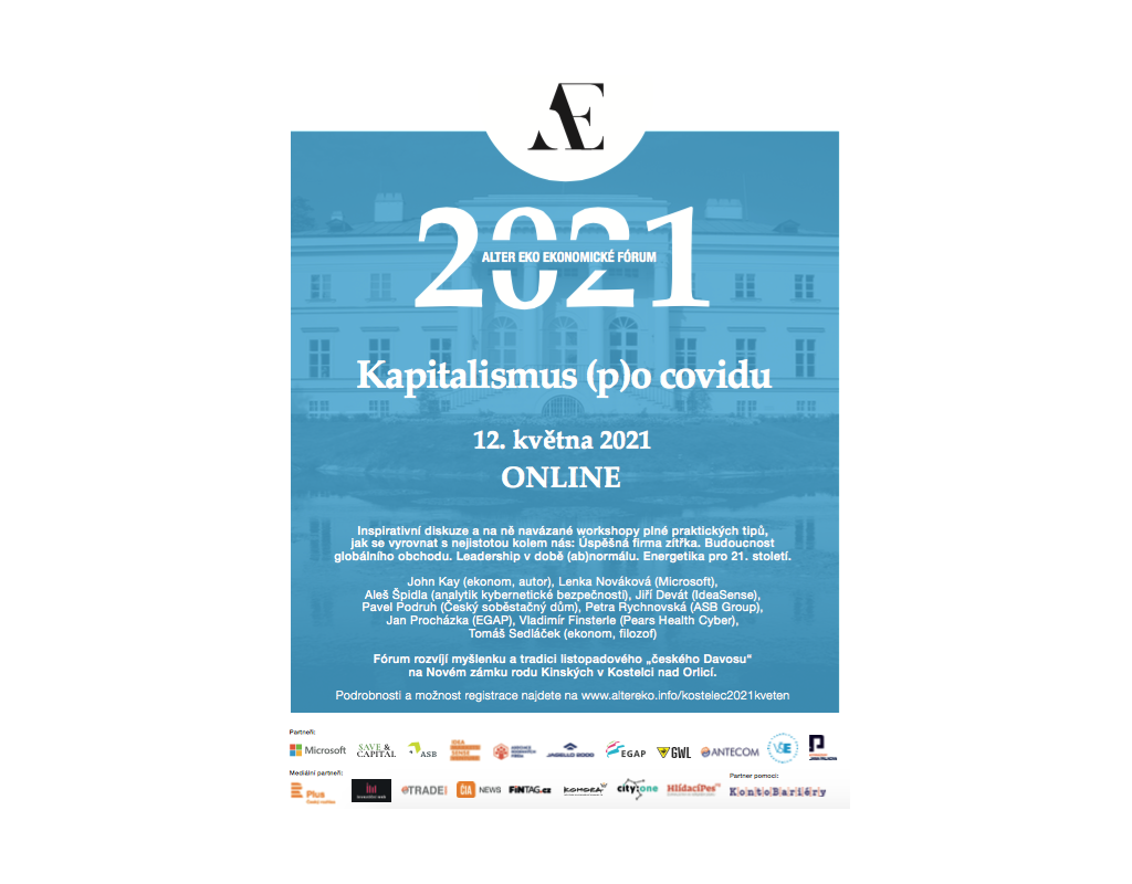 O výše uvedených a souvisejících tématech budeme diskutovat během jarního ALTER EKOnomického fóra, které volně naváže na cyklus „českých Davosů“ pořádaných na zámku Kinských v Kostelci nad Orlicí. Hlavním řečníkem bude John Kay, jeden z nejrespektovanějších britských ekonomů, autor knihy Greed is Dead. John odstartuje dopolední program, který jako tradičně věnujeme vizím a trendům. Odpoledne pak nabídneme detailní analýzu vybraných výzev, kterým (nejen) manažeři a majitelé firem dnes čelí, a nástin možných řešení. To vše v rámci workshopů, jejichž cílem je předat prakticky využitelné zkušenosti.