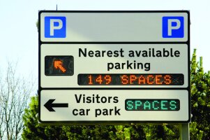 - proměnného dopravního značení (navigační LED tabule) navigující řidiče na volná místa,