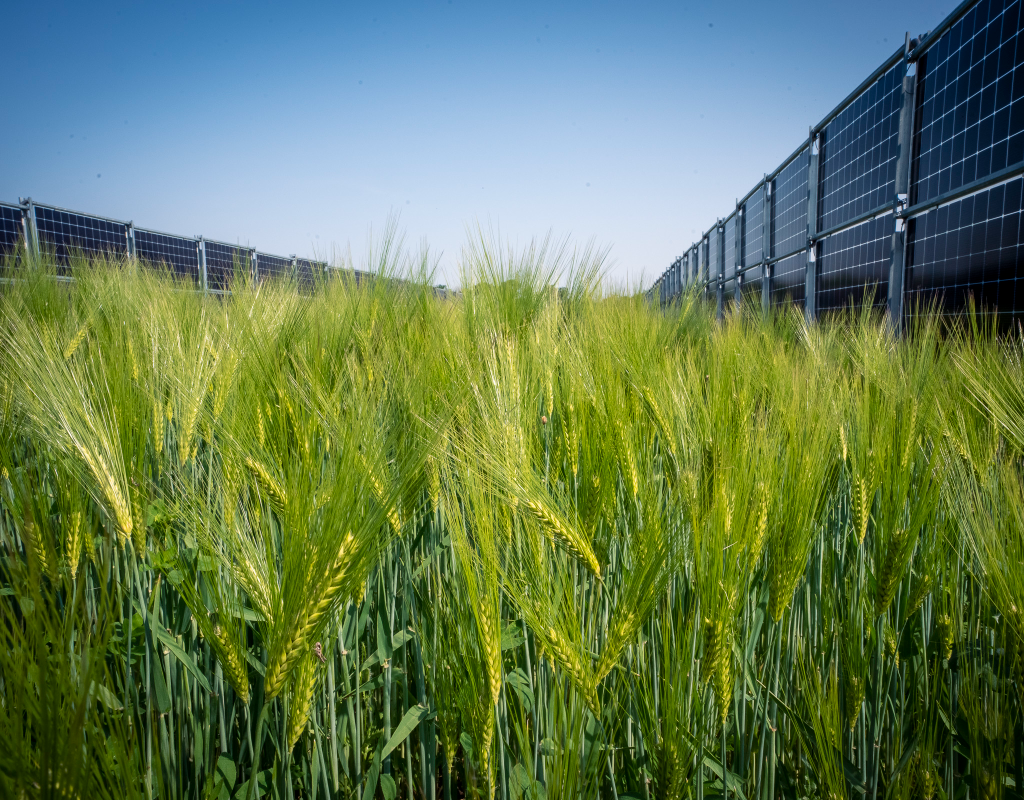 Využití zemědělských ploch pro pěstování plodin a současně i výrobu obnovitelné energie, zkráceně agrovoltaiku, testuje vídeňský energetický podnik Wien Energie ve spolupráci s přírodně-technickou univerzitou BOKU Wien od roku 2019. V rámci testu vyrostlo před dvěma lety na jednom z polí na severovýchodním předměstí Vídně kolem 400 vertikálních oboustranných fotovoltaických panelů, které tvoří největší agrovoltaickou elektrárnu svého druhu v Rakousku. Takzvané bifaciální moduly postavené v řadách vedle sebe přeměňují sluneční světlo na elektřinu z přední i zadní strany. Mezi panely přitom rostou běžné zemědělské plodiny a rozestupy umožňují vjezd i manipulaci potřebné zemědělské techniky.