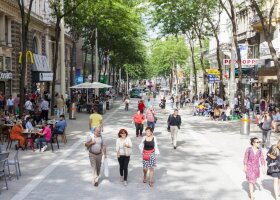 Vídeňská ulice Mariahilfer Straße je dnes jednou z nejznámějších nákupních tříd v Evropě. Bulvár spojující centrum Vídně s nádražím Westbahnhof byl sice již řadu desetiletí plný obchodů, ale také motorových vozidel. Uzavření ulice pro auta a její přeměna v pěší zónu s bohatým městským mobiliářem z Mariahilfer Straße učinila oblíbené místo pro trávení volného času i setkávání.